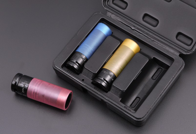 详解iBrand朕的工具高寿命薄壁彩色六角风动套筒组套套筒是搭配棘轮扳手或者气动工具的配件中最常使用到的配件之一,由六角孔或十二角孔的内孔作区分,特别适用于拧转位置十分狭小或凹陷很深处的螺栓或螺母。 -